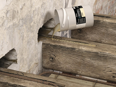 Adhésif époxyde bi-composant fluide structural, s’injecte dans les trous et rainures, après colmatage des fuites.