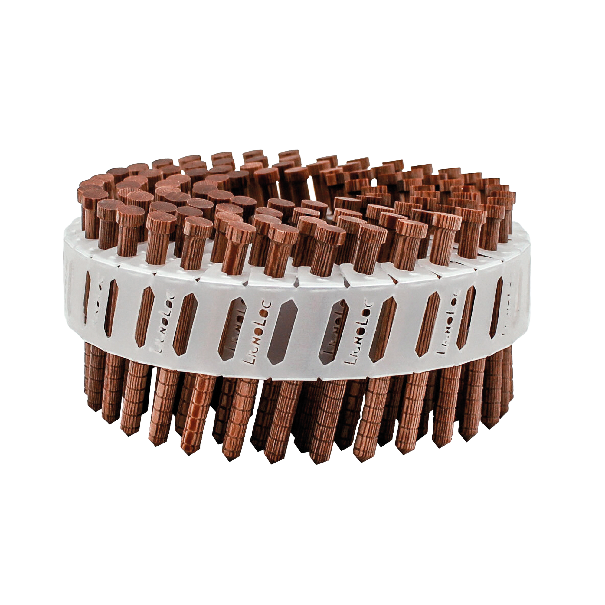 Réalisés à partir de bois de hêtre compressé avec soudure à la lignine brevetée, les clous LIGNOLOC® offrent une résistance élevée à la traction et au cisaillement sans métal. Réduction des émissions de CO₂ jusqu’à 66 % par rapport aux clous traditionnels.
