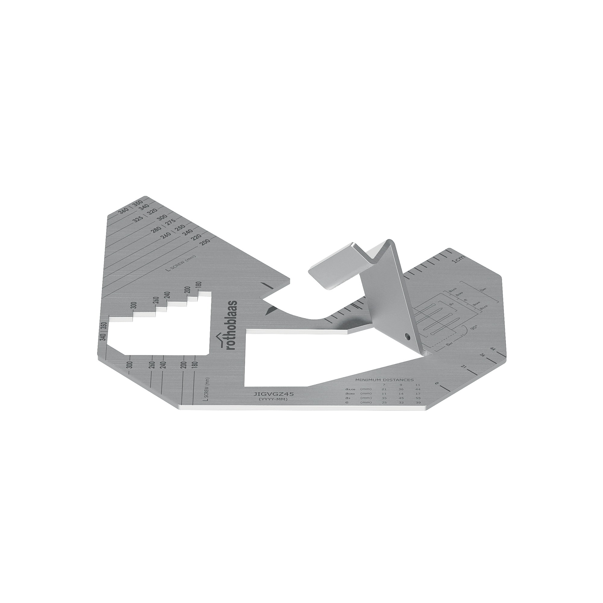 Le gabarit JIG VGZ 45° est l’aide universelle pour visser tous les types de vis à 45°, avec rapidité et précision. Grâce aux marquages, il est possible de réaliser, en toute facilité, différentes connexions typiques de la construction en bois, sans perdre de temps dans des mesures exténuantes.