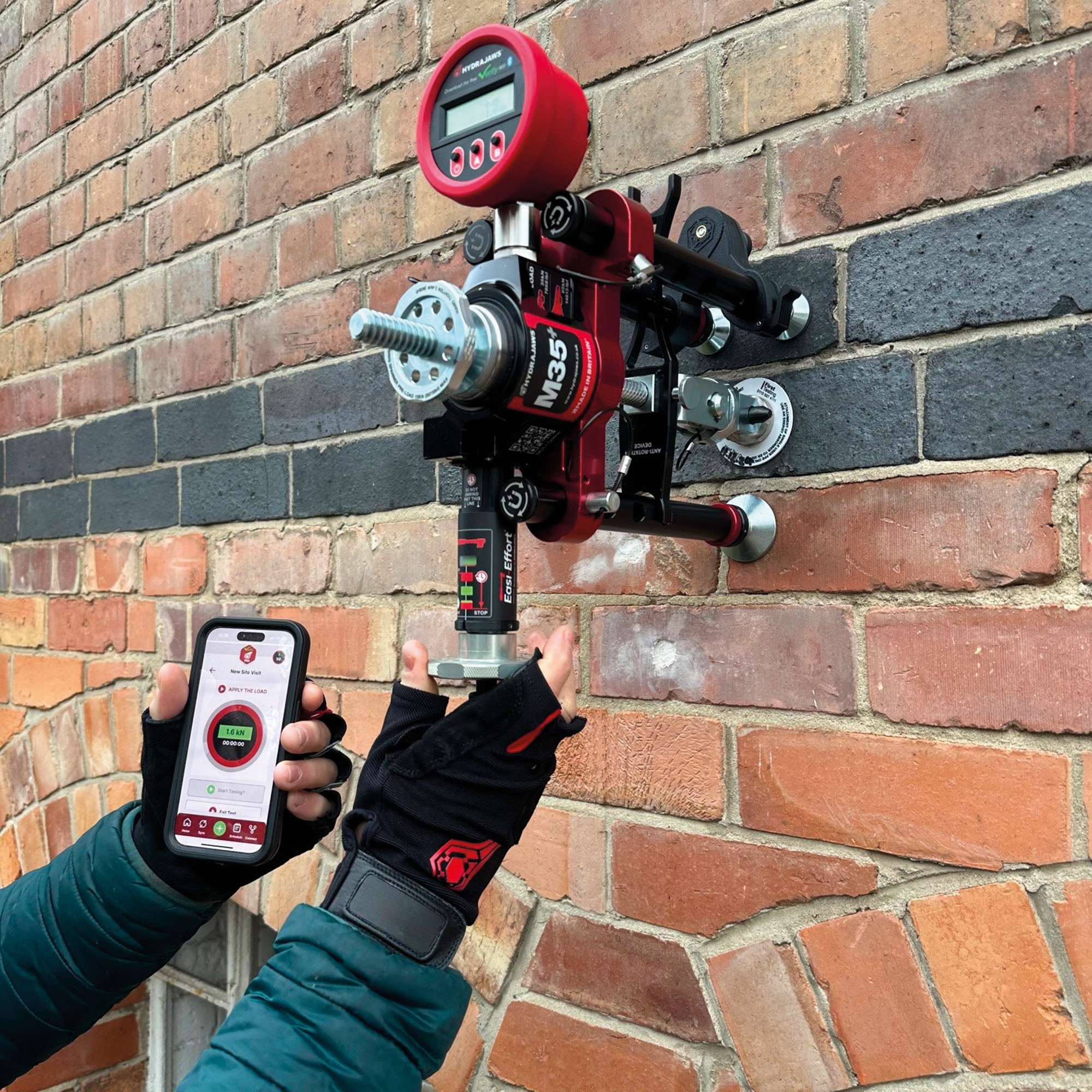 Les valeurs mesurées peuvent être enregistrées grâce à l’app. Il s'agit d'un instrument idéal pour les essais d'arrachement conformes aux normes BS 8539, BS 7883, BS EN 795 et AEFAC-TN05.