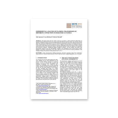 This paper presents the first results of the flan.wood project, a study promoted by Rotho Blaas srl regarding flanking transmission between CLT panels jointed with different connection systems.